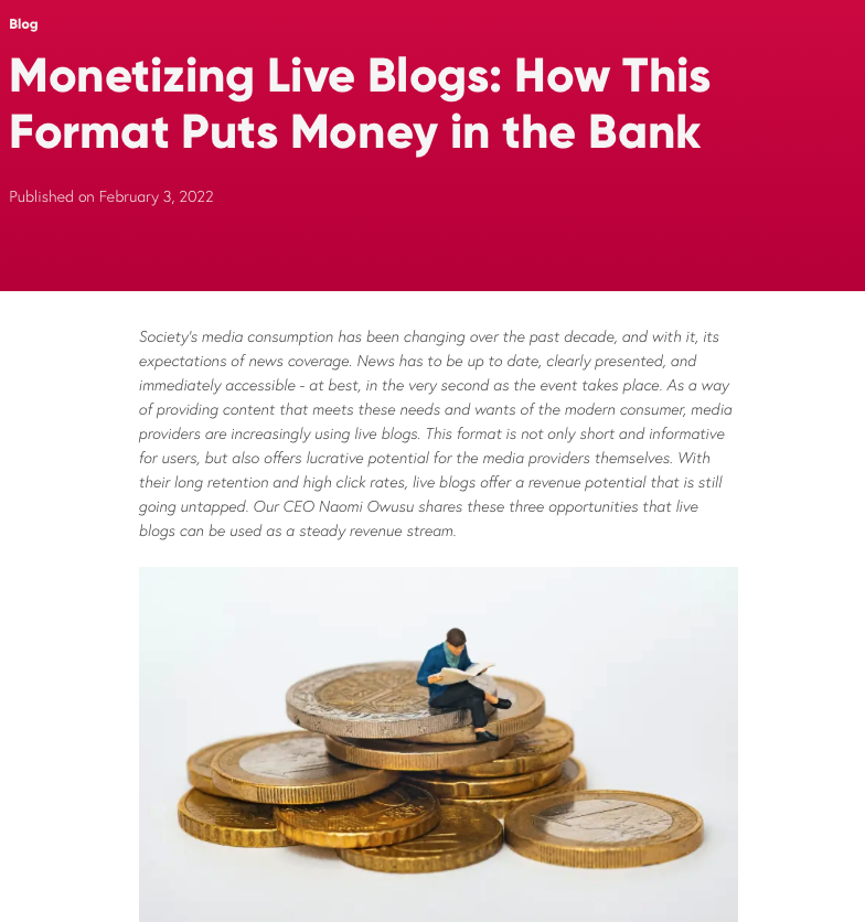 Für Events kannst du deinen Liveblog gemeinsam mit einem Werbepartner oder Sponsor anbieten.