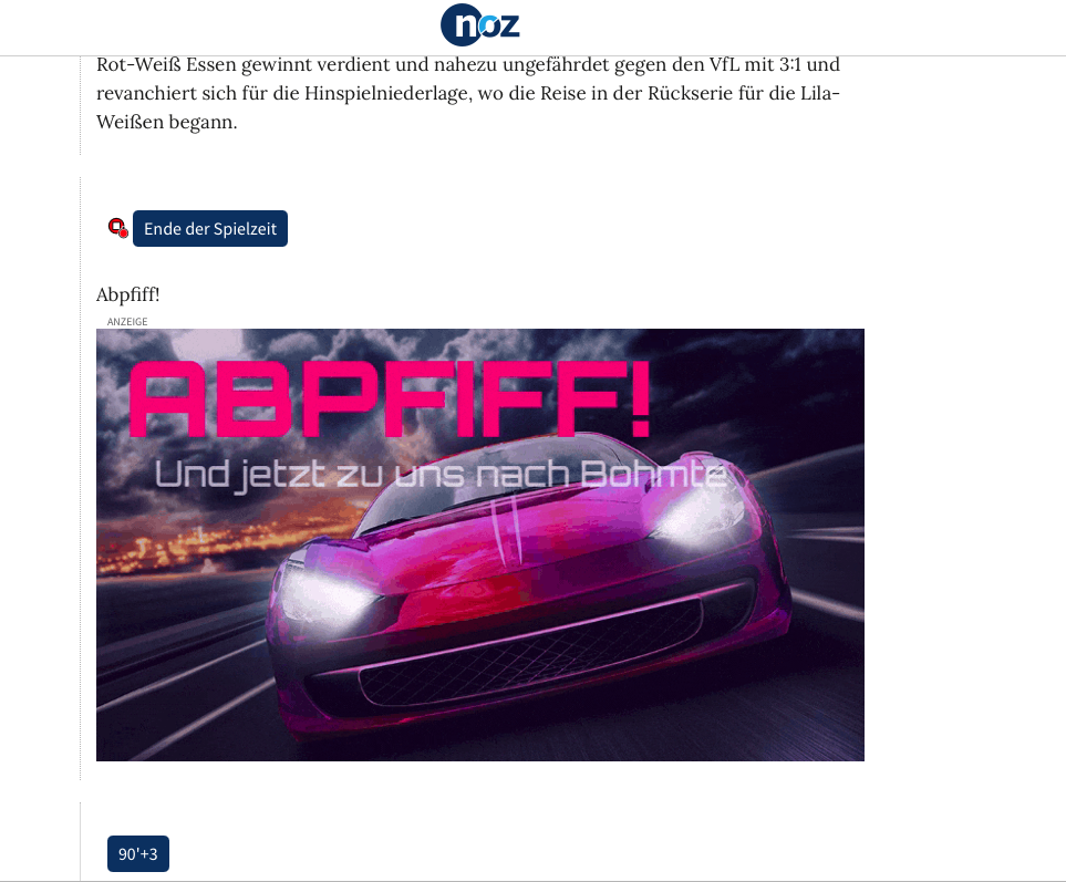 Please note that this feature works exclusively with sports templates. For example, if a goal is scored or a player is substituted in your football ticker, a perfectly matching ad can be triggered for that post – as demonstrated by NOZ. Alternatively, you can set ads to appear after a certain number of posts, giving you full flexibility.